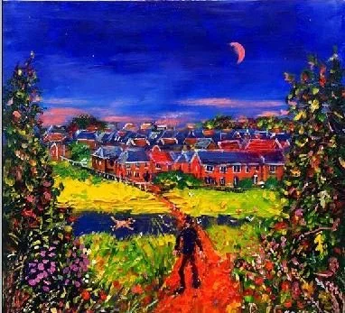 Early Shift’ shows a Newcastle trolleybus completing the early morning journey on service 34 from Denton Square. The route from Denton Square would have been up Denton Bank passing Benwell High Reservoir, down Westgate Hill, along Mosley Street and by the Head Office of Newcastle Transport at Manors, then City Road skirting the Tyne-Tees Television Studios, along the riverside weaving by the shipyards at Walker and finally to Park Road. Overhead an electric train from The Coast packed with commuters’ speeds towards Newcastle Central Station, while the ‘men folk’ below, with customary flat caps and their bait, are ‘gannin to the yard’ for another day of heavy toil and hard graft.